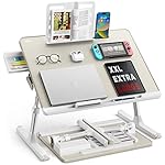 Laptop Bed Tray Table, SAIJI Adjustable Bed Desk for Laptop, Foldable Laptop Stand with Storage Drawer for Eating, Working, Writing, Gaming, Drawing (Khaki Gray, X-Large)