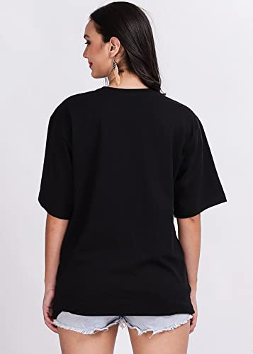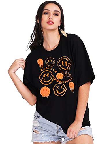 LEOTUDE Cotton Blend Half Sleeve Oversized Emoji Printed T-Shirts for Women