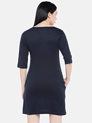 STATUS MANTRA Long Tshirt Dress for Women | Knee Length 3/4 Quarter Sleeves Cotton Tops with Side Pockets