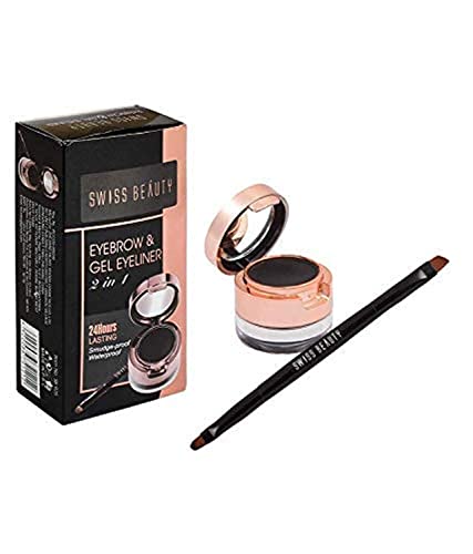 Swiss Beauty Waterproof Eyebrow & Gel Eyeliner 2 In 1 with Brush Semi-Matte Finish Smudge proof Gel Eyeliner and Eyebrow Definer Pencil Shade- Black, 7g